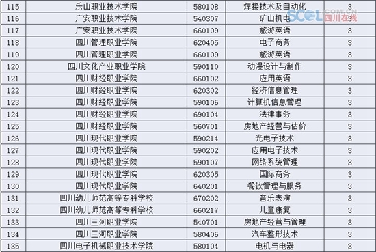 4月14日,四川省教育厅公布了今年度四川省各高校高职高专招生目录。