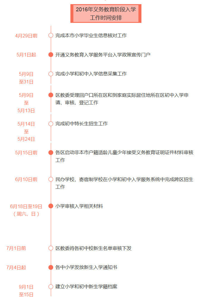2016北京义务教育阶段入学工作时间表
